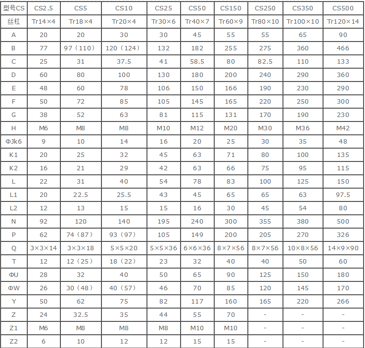 分為:CS2.5~CS500共9種,提升力依次為2.5KN~500KN。