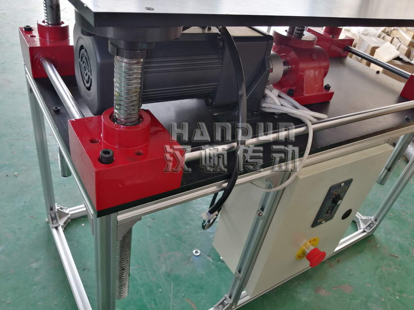 1.工作原理;依靠齒輪和齒條之間的聯動配合,保證四個或多個支撐點同步升降,進而實現工作平臺平穩升降,四個支撐點的同步誤差最小可達0.5mm