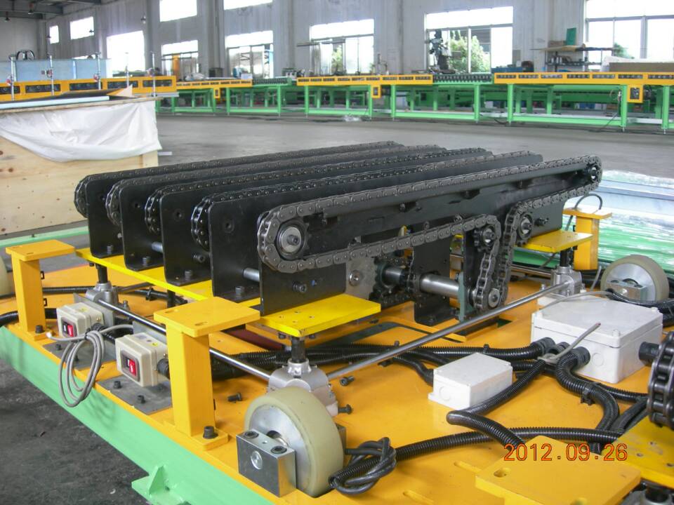 加節裝置設在機廂的頂部,是一臺手動或機動的小型動臂式起重機。加節時,機廂上升到離塔頂一定距離處,利用起重機把待加標準節段吊到塔頂,就位固定后,即完成加節工序。為了確保升降機的安全運行,設有限速制動裝置,行程限位開關,行門保護開關等。設在機廂內,由電動機、減速器和齒輪齒條組成。減速器輸出軸端的齒輪,伸出機廂,與固定在塔架上的齒條嚙合,帶著機廂上下運行。機廂內設有控制系統,操作人員亦可隨機運行。